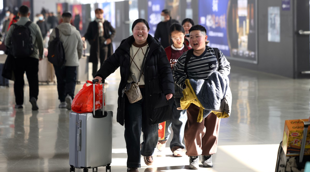 隨著春節臨近,鐵路春運進入節前客流高峰。圖為2月11日,旅客在徐州東站乘車出行。陳儼 攝